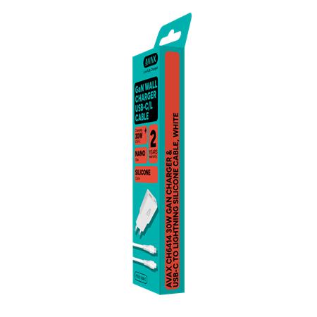 Az AVAX CH6414 csomag praktikus és teljes körű megoldást kínál a modern töltési igényekhez. A csomag GaN gyorstöltőt és USB-C -  Lightning szilikon kábelt tartalmaz, így ideális választás otthoni, irodai vagy utazás közbeni használatra.